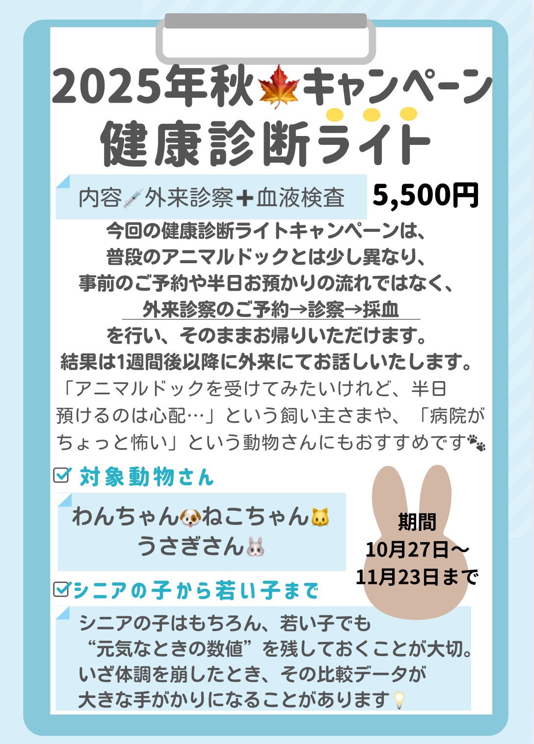 健康診断ライト🍁キャンペーン🐶🐱🐰
